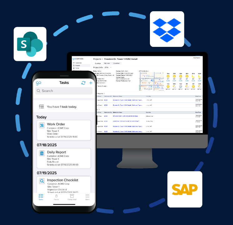 Enhance your GoCanvas experience by syncing real-time data to one or all of your business tools.